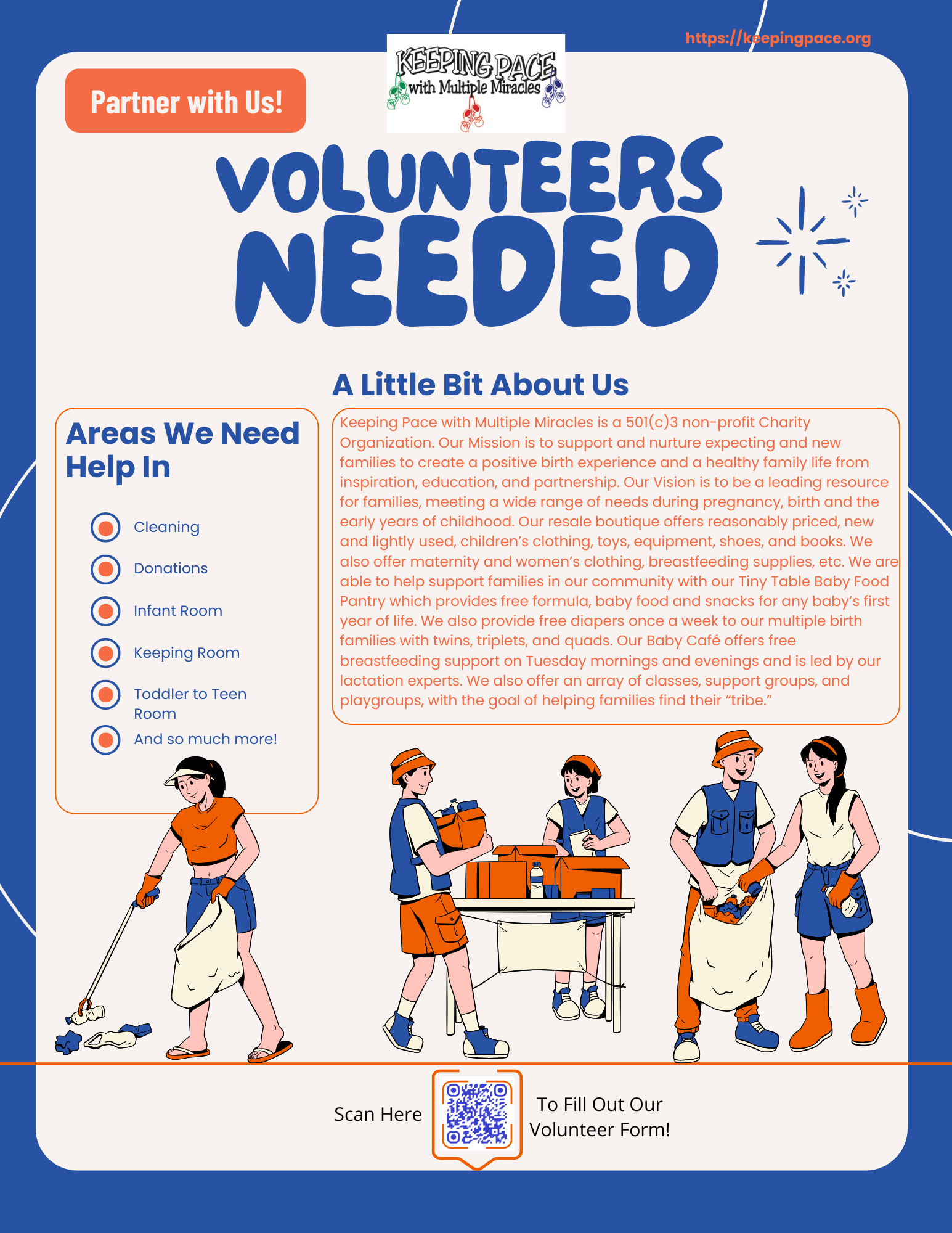 If you would like to volunteer individually or with a group, please scan the QR Code or click the button below to fill out our volunteer form!